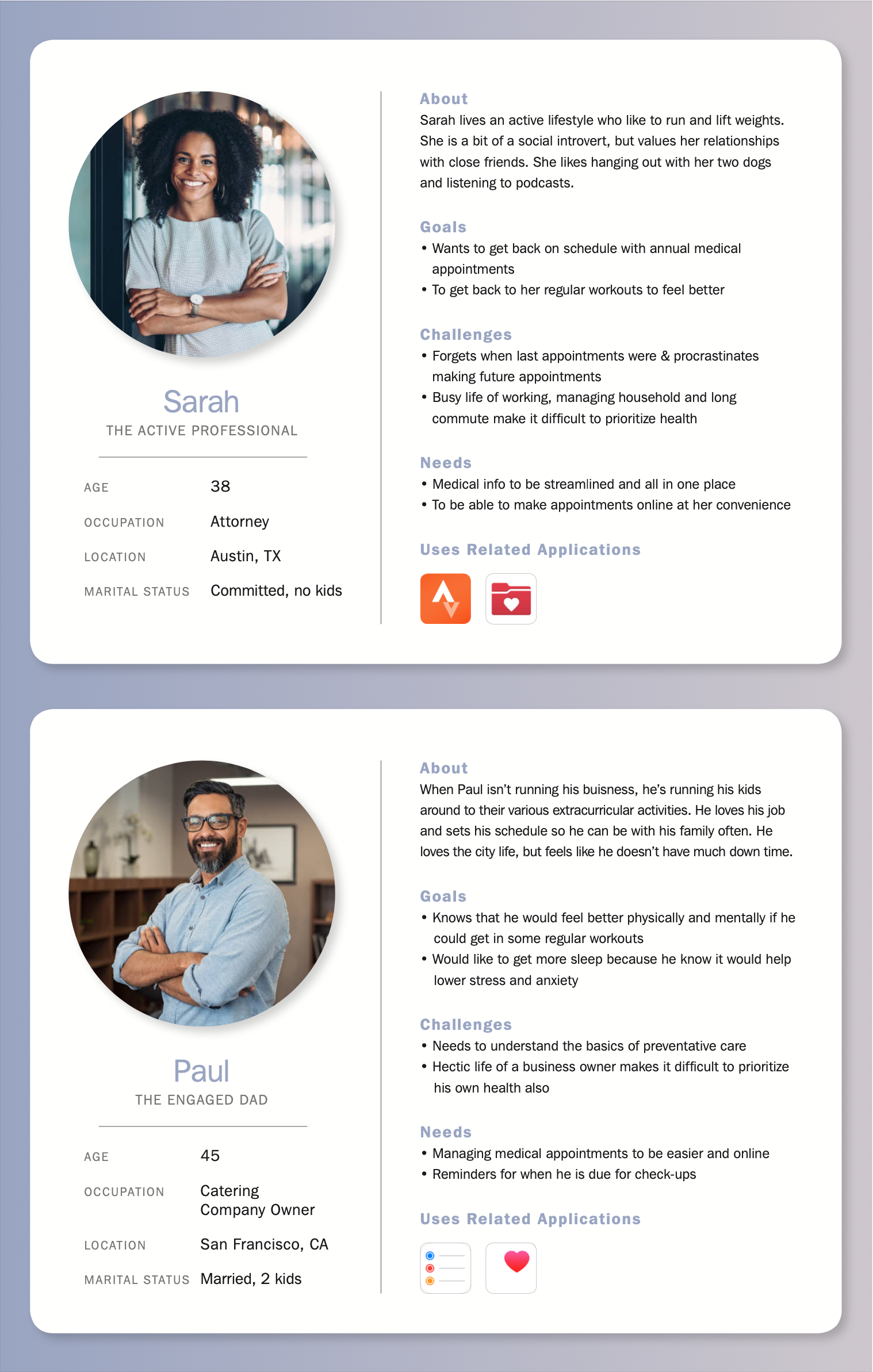 I created these friends to help build empathy and understanding with the end user. By trying to understand the users’ needs, experiences, behaviors and goals, I can make sure that the product is truly user centric designed.