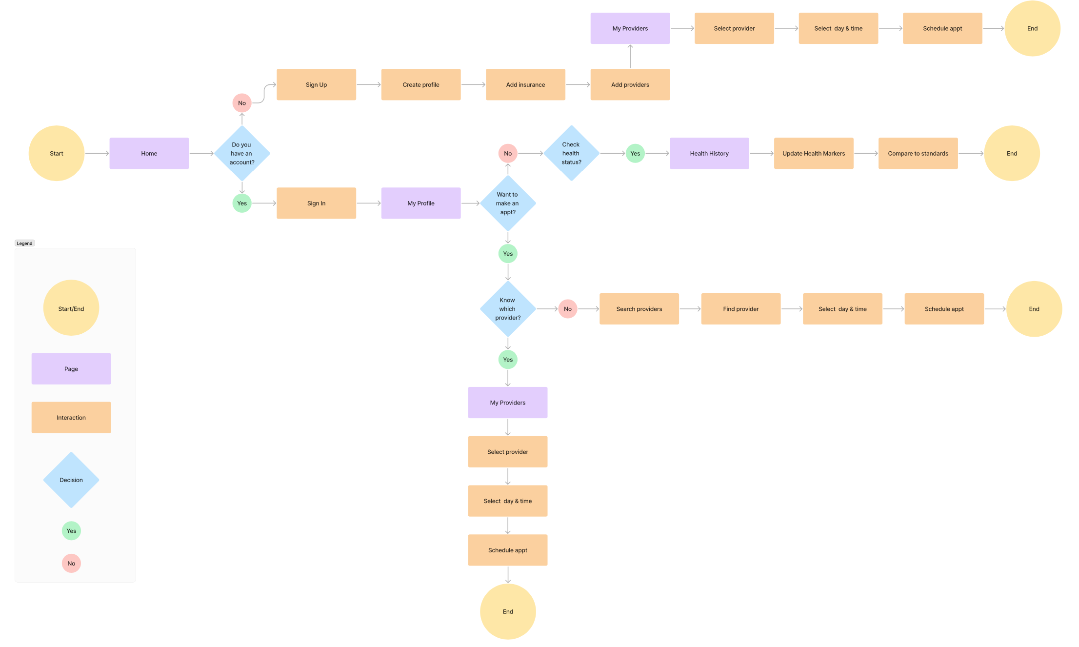 I made a plan to talk to real people and get to the heart of why so many people don’t engage in preventative care. (I was assuming this, but found out it was true!) I interviewed people who could be potential users. Then I used affinity mapping to extract insights and find themes. Nearly all interviewees had fallen off of their regularly scheduled preventative care appointments. A common reason was forgetting or not having time to make the appointments and that reminders would be helpful.