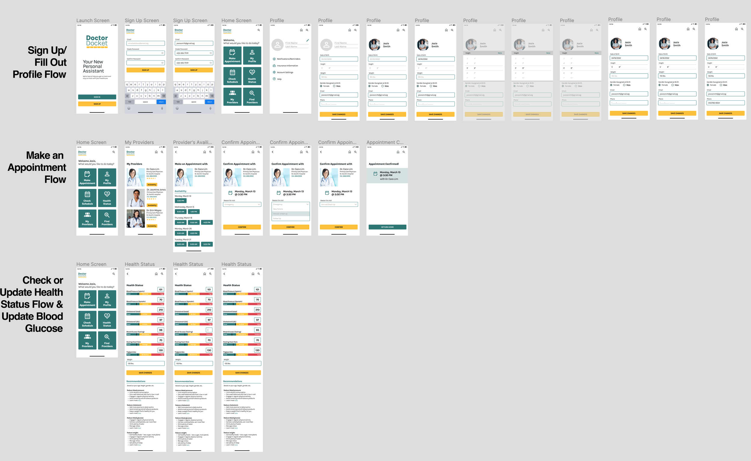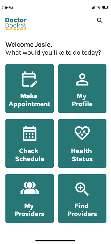 A tool to empower people to be proactive with their health while creating positive habits. Doctor Docket is an organizational tool that allows the user to make and keep track of their medical appointments. Taking into account the users’ age and current health it shows recommended appointments and health goals. Doctor Docket also stores your provider and insurance info and sends reminders for upcoming and suggested appointments.